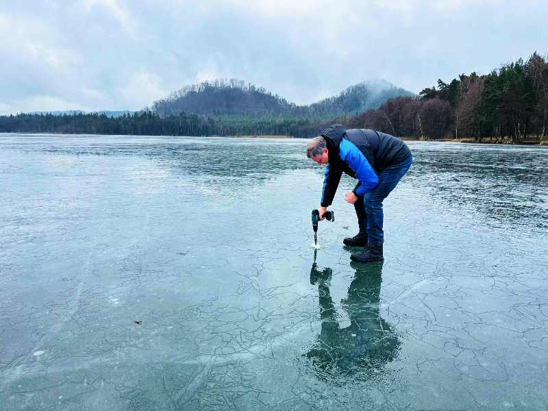 Inspekce ledu v sobotu o půl jedenácté dopoledne v Hamru na Jezeře zasadila krutou ránu valentýnským ledům. Na hladině je krásný led, ale jeho síla se oproti středě strašlivě ztenčila. Místo jednadvaceti centimetrů má již jen patnáct.