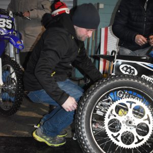 Jan Holub šroubuje na motocyklu Zdeňka Simoty | foto Antonín Škach