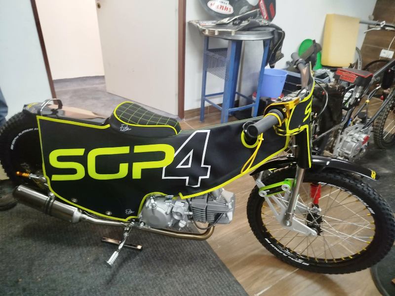 Dominik Suchánek dnes ve Svítkově pózoval v sedle motocyklu s motorem Daytona specifikace SGP4 produkovaného prostřednictvím Tonyho Rickardssona. Jeho dědeček Josef jej přivezl dnes z Polska. Nešetřil přitom slovy vřelých díků na adresu sponzorů, jež takovou akvizici umožnili, především AMK ZP Pardubice, Tuft Built EU a Pardubický Pub.